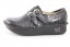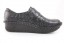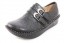 The Alegria Alli Collection is part of the Professional line from Alegria Shoes. This means it offers the additional feature of a stain resistant leather upper plus the slip resistant outsole--perfect for the professional who wants style, comfort, and functionality. To add adjustability across the instep the Alli Black Silver Rose has gunmetal colored decorative double buckles that conveniently hide velcro closures. The Alli Black Silver Rose is gorgeous with a textured embossed leather upper that is polished to a high shine. The silver highlights on the floral design also offer a slight irredescence when the light hits the leather and compliment the silver stitching. Like most Alegria shoes, this loafer has a generous toe box so that your toes can spread out, reducing metatarsal pressure and reducing overall foot fatigue. The unparalleled comfort comes from many unique features such as: