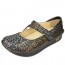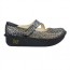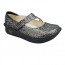 The Alegria Alli Collection is part of the Professional line from Alegria Shoes. This means it offers the additional feature of a stain resistant leather upper plus the slip resistant outsole--perfect for the professional who wants style, comfort, and functionality. To add adjustability across the instep the Alli Black Silver Rose has gunmetal colored decorative double buckles that conveniently hide velcro closures. The Alli Black Silver Rose is gorgeous with a textured embossed leather upper that is polished to a high shine. ...