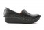 The Alegria Alli Collection is part of the Professional line from Alegria Shoes. This means it offers the additional feature of a stain resistant leather upper plus the slip resistant outsole--perfect for the professional who wants style, comfort, and functionality. To add adjustability across the instep the Alli Black Silver Rose has gunmetal colored decorative double buckles that conveniently hide velcro closures. The Alli Black Silver Rose is gorgeous with a textured embossed leather upper that is polished to a high shine. The silver highlights on the floral design also offer a slight irredescence when the light hits the leather and compliment the silver stitching. Like most Alegria shoes, this loafer has a generous toe box so that your toes can spread out, reducing metatarsal pressure and reducing overall foot fatigue. The unparalleled comfort comes from many unique features such as: