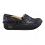 The Alegria Alli Collection is part of the Professional line from Alegria Shoes. This means it offers the additional feature of a stain resistant leather upper plus the slip resistant outsole--perfect for the professional who wants style, comfort, and functionality. To add adjustability across the instep the Alli Black Silver Rose has gunmetal colored decorative double buckles that conveniently hide velcro closures. The Alli Black Silver Rose is gorgeous with a textured embossed leather upper that is polished to a high shine. ...