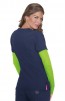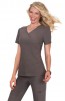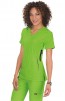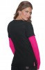 koi Lite's performance stretch mock-wrap top with rib knit sides.